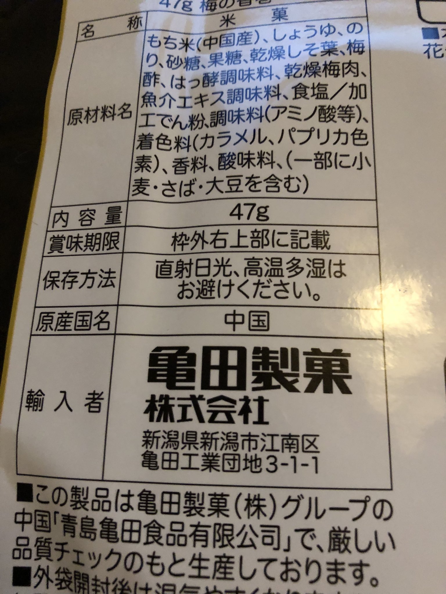 しかし、亀田製菓の「梅の香巻」はMade in Japanではありません。